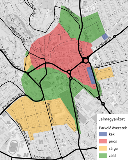 Veszprémben négy zóna különül el egymástól díjosztályonként.