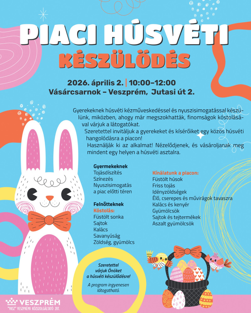 A lassan hagyománnyá váló húsvéti készülődés idén is várja a gyerekeket és kísérőiket kézműves foglalkozásokkal és finomságokkal. A programot kóstolási lehetőség, alkotás és nyuszisimogatás teszi teljessé, megalapozva az ünnepi hangulatot.